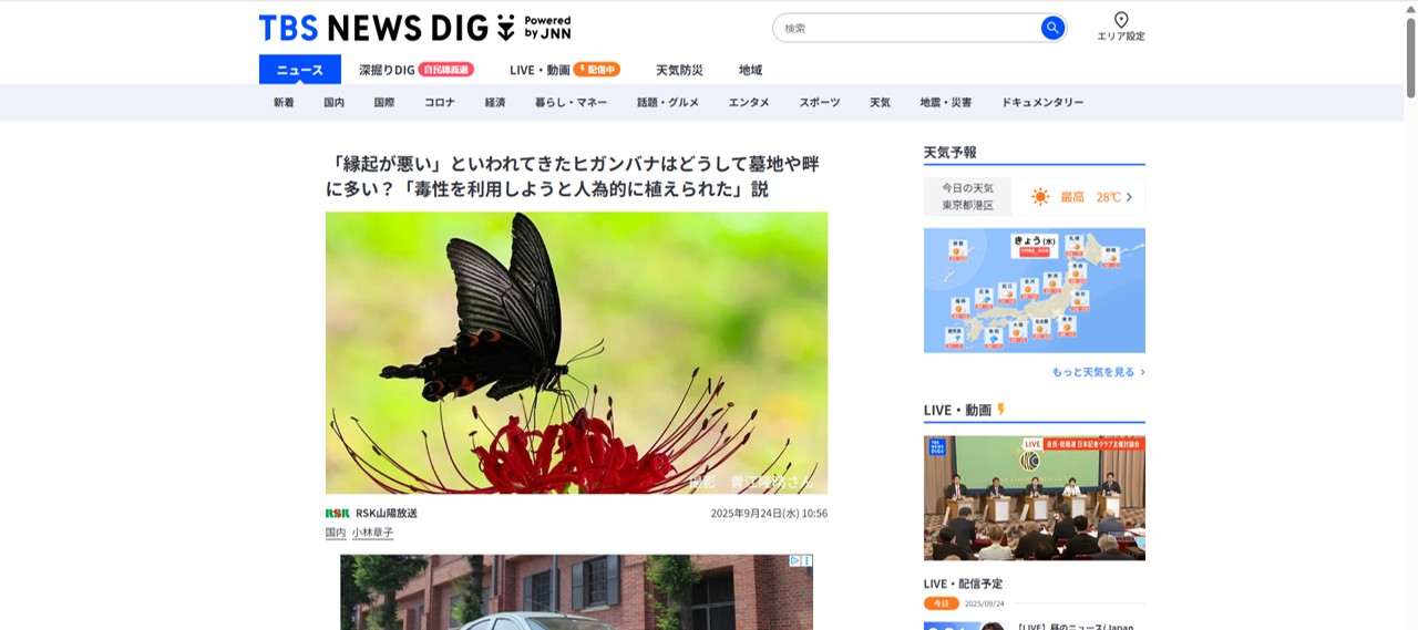 ヒガンバナの蜜を吸うクロアゲハは益虫?害虫? 武家にとっては優雅さや繁栄を象徴する存在 -