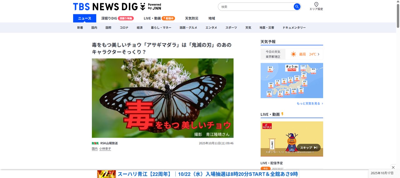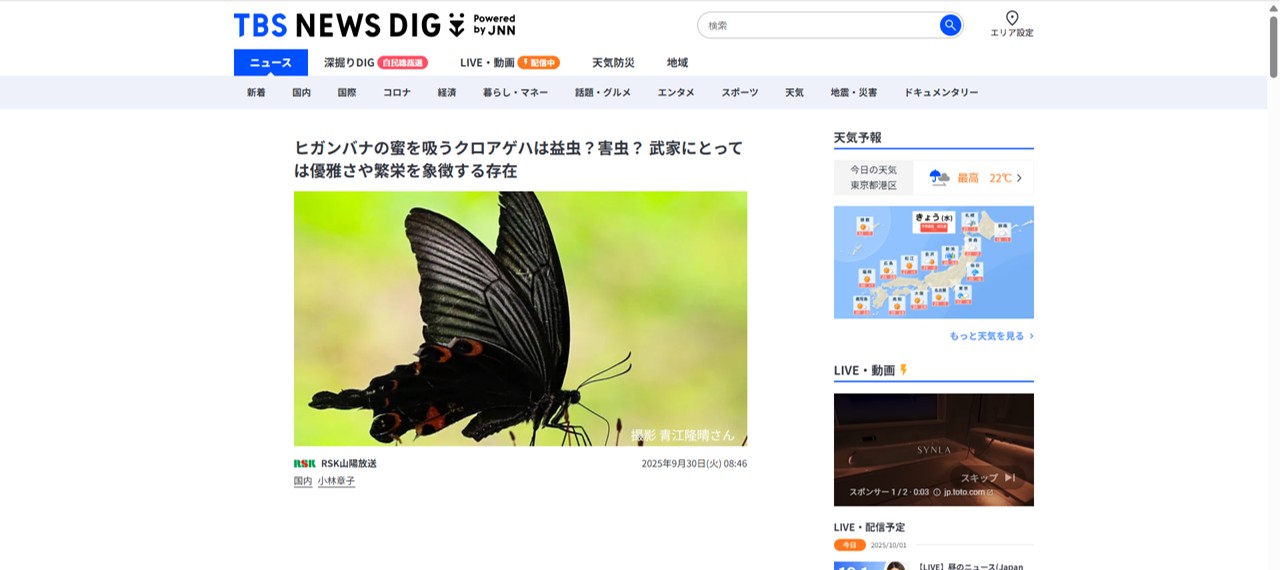 毒をもつ美しいチョウ「アサギマダラ」は「鬼滅の刃」のあのキャラクターそっくり? -
