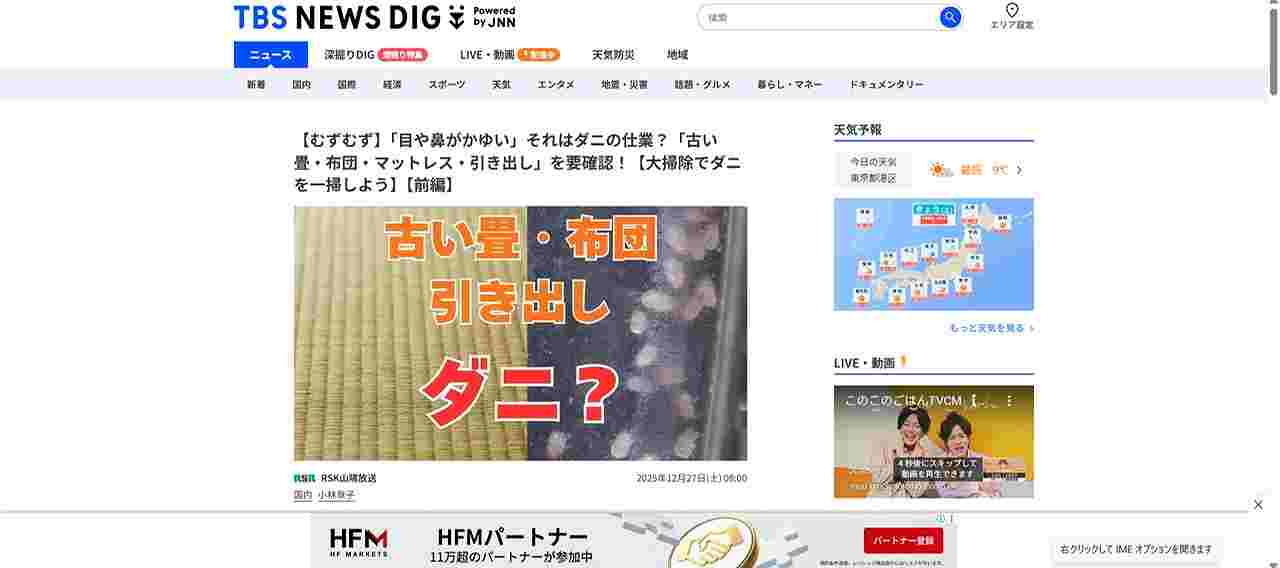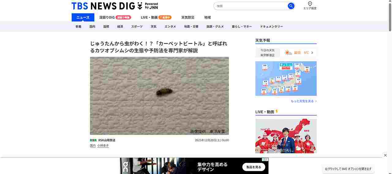 「無視できない虫のはなし」で10分の小コーナー(AM 7:15~7:25)に出演しました。春を迎えるころの、おうちの中や周りでカメムシやゴキブリ、ダンゴムシなどがどこにいて(シンクの下、押し入れ、玄関周りやお庭など…)どんなふうに対策をするといいのか、衣替えの際、冬物を虫やカビから防ぐために「洗濯」、「乾燥」、「しまう場所の掃除」の意味や大切さ、仕舞い方のコツなどをお話ししました。季節の変わり目の対策をとることで、新しい季節に向けて、また来年も冬物を気持ちよく使うための準備をしていきましょう!