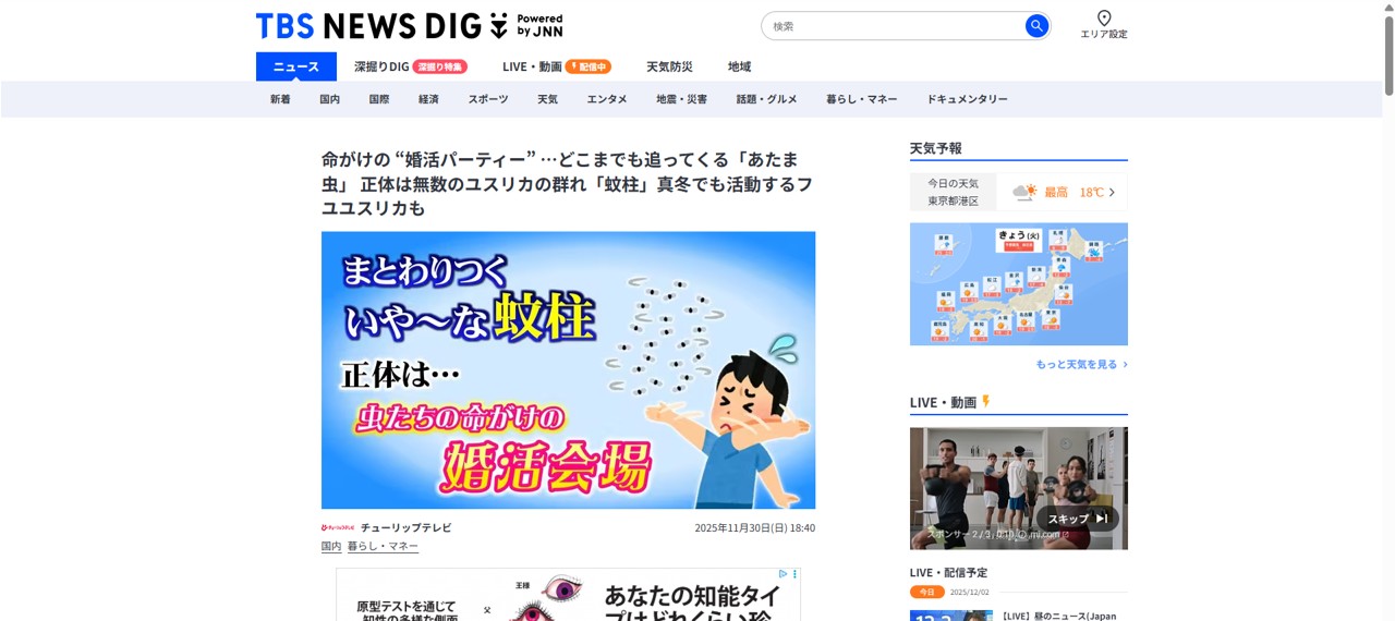 厄介な蚊は「蚊の弱点を知って対策しよう」家に入るときは“小走り”で蚊をまく 眠るときはどうしたら…?